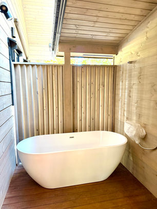 フィンランド式本格的プライベートサウナ。大きな窓からは、四季折々の自然美をご覧いただけます。サウナヒーターは「HARVIA」をご準備しました。ロウリュの後はウッドデッキにある水風呂へ。リラクゼーションデッキのサウナチェアーに腰かけて、心も体も整う瞬間をお楽しみください。